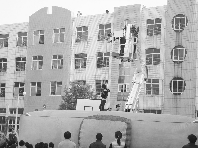 日前,市消防支队消防官兵来到随州经济开发区淅河二中,现场教该校学生进行高空逃生演练。图为演练现场。