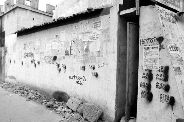 城区许多的沿路立面也遭到了“牛皮癣”的攻击,电线杆、空调外挂机箱等地方都成了它们的“栖身”处。采访发现,不少路面的立面广告都被粉刷了,但多采用白色的涂料直接涂刷,虽然覆盖了“牛皮癣”,但与墙体的颜色极不相称。
