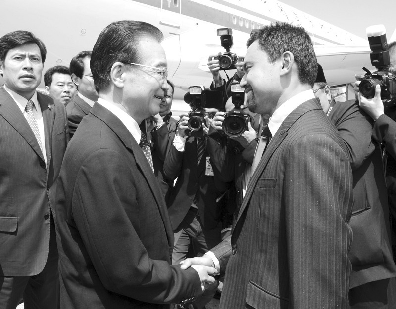 11月20日,国务院总理温家宝乘专机抵达文莱首都斯里巴加湾市文莱国际机场,开始对文莱进行正式访问。当日,温家宝参观了文莱大学,并与师生进行了交流。(新华社发)
