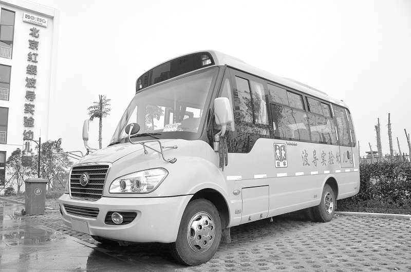 甘肃庆阳校车事故发生以后,网上曾流传过一张美国校车与悍马车相撞的照片,照片中的黄色“大鼻子”校车与悍马相撞却安然无事,因此成为网民心目中优质校车的代表。不过,波导幼儿园采购的这辆“大鼻子”校车并非来自美国,而是出自郑州宇通客车公司之手。