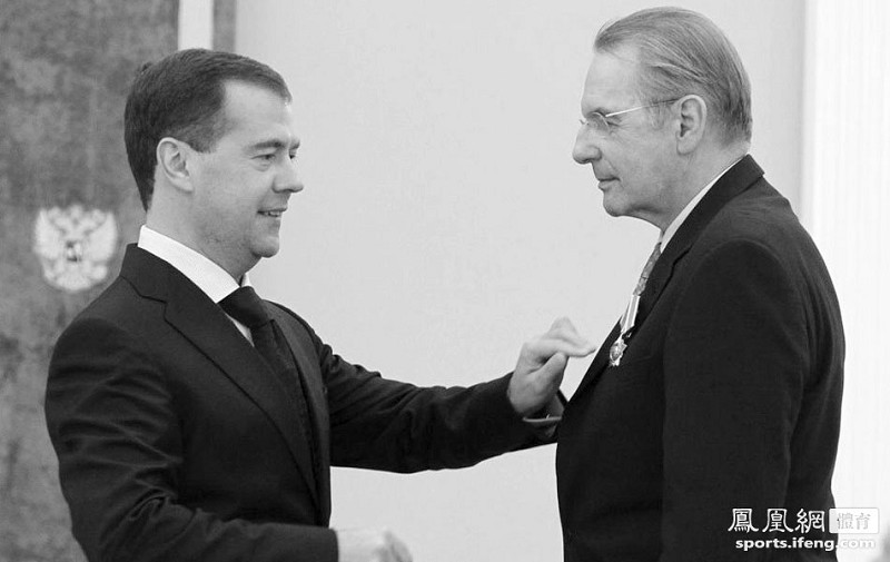 俄罗斯总统梅德韦杰夫22日在总统官邸向国际奥委会主席罗格颁发了友谊奖章,以表彰他为国际及俄罗斯体育事业作出的贡献。 (新华社发)