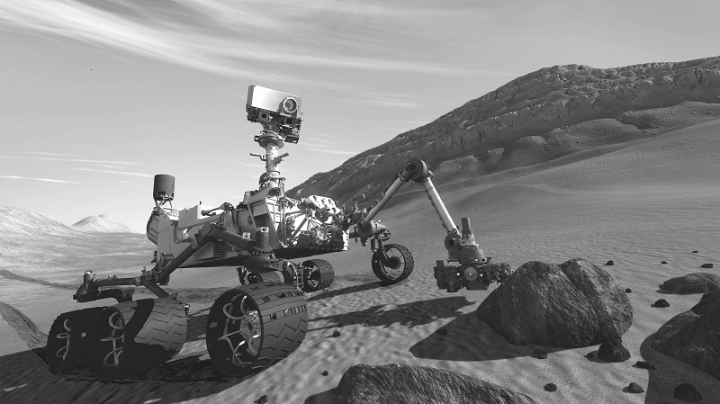 11月26日,“好奇”号火星车在美国佛罗里达州卡纳维拉尔角空军基地升空,这个探测器主要用于探索火星过去或现在是否存在适宜生命生存的环境。图为美国航天局公布的“好奇”号火星车探测工作假想图。(新华社发)