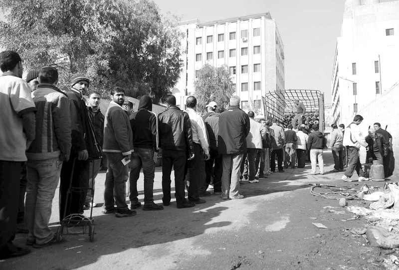 11月28日,在叙利亚首都大马士革,当地居民在一处加油站排队购买罐装燃气。罐装燃气是叙利亚居民做饭的主要燃料,连续数月的国内冲突和欧美的经济制裁导致叙利亚各地出现燃气短缺。尽管政府已采取缓解措施并呼吁民众不要恐慌性囤积,但燃气价格已多次上涨,“一瓶难求”的状况仍然存在。 (新华社发)
