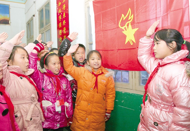 “我是中国少年先锋队队员。我在队旗下宣誓……”近日,随县环潭镇第二小学开展“红领巾心向党”活动,通过各种形式培养学生对党和社会主义祖国的感情,激发他们努力争当新时期“四好少年”的决心。图为该校五(一)班“红领巾心向党”主题队会——重温入队誓词。(本报记者 张顺 通讯员 彭新发 路学 摄)