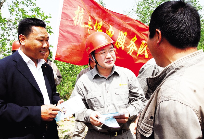 图为:随州供电公司总经理祁利抗旱服务在一线