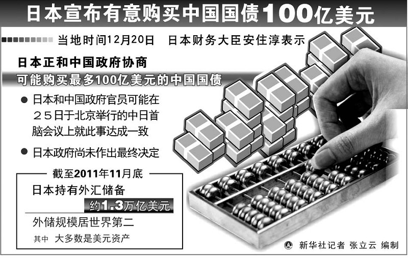 ·日本宣布有意购买中国国债100亿美元