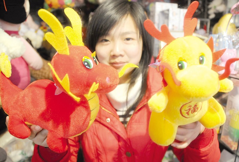 元旦期间,随州城区龙图案装饰品深受市民喜爱。(本报记者 杨闻名 摄)