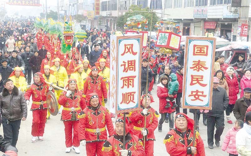 2月4日,随县殷店镇举行“喜迎十八大,欢度元宵节”民间文艺走街串巷活动,来自镇内10个村的文体表演队伍身着节日盛装,表演锣鼓、扇舞、舞狮、龙灯、大头娃娃、旱船等民间节目,让观众一饱眼福。