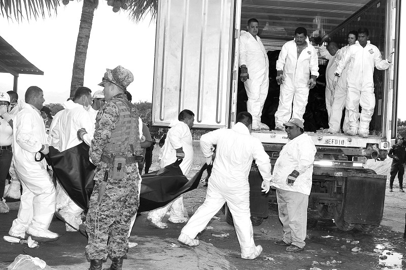 2月15日,工作人员在洪都拉斯发生火灾的科马亚瓜监狱搬运尸体。洪都拉斯监狱总监达尼洛·奥雷利亚纳15日证实,该国中部城市科马亚瓜监狱大火的遇难人数已经升至357人。截至目前,这座关押了800多人的监狱中仍有相当一部分囚犯失踪,他们中不少人趁乱越狱,也有人不幸遇难。 (新华社发)