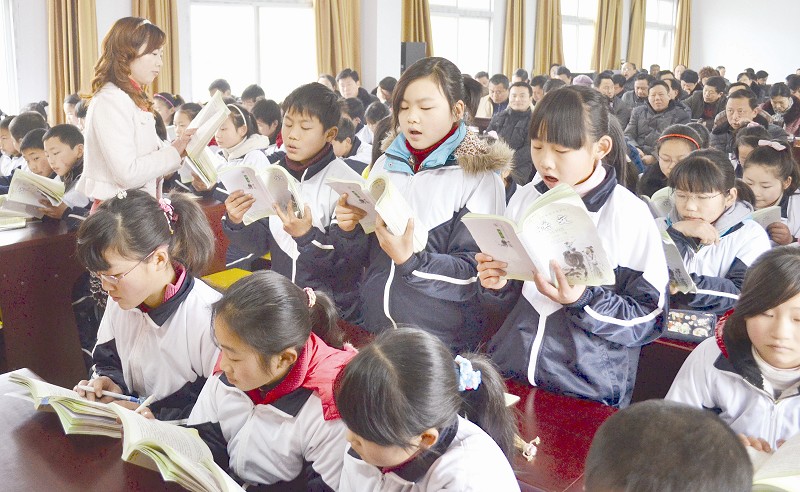 2月14日,曾都区2012年教学工作会议在洛阳镇中心学校举行,来自该区各学校的校长等共百余人观摩了该校教师主讲的示范课《观舞记》。 (本报记者 杨闻名 通讯员 李超摄)