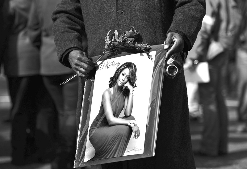 2月18日,在美国新泽西州纽瓦克市,歌迷手持惠特尼·休斯敦的照片前来悼念。当日,美国流行乐坛歌手惠特尼·休斯敦的葬礼在位于新泽西州的“新希望”浸信会教堂举行,这里是惠特尼·休斯敦童年首次担任唱诗班成员的地方。 (新华社发)