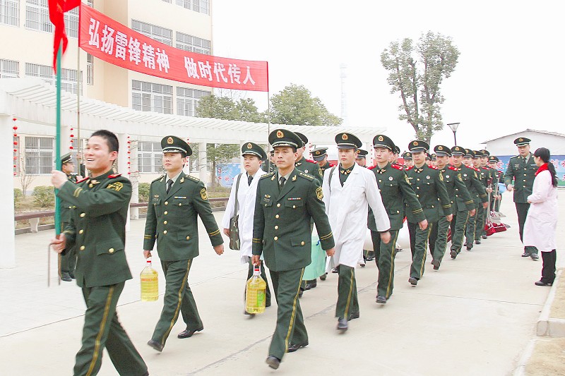 3月2日,武警随州市支队“学雷锋”小分队来到市福利院,为老人们送去了水果、大米、油等慰问品,热心为孤寡老人和智障儿童理发、义务巡诊、送医送药、清理卫生等。 (本报记者 杨闻名 通讯员 朱灵摄)