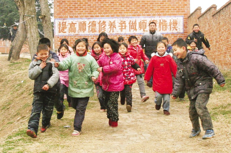 图二:高庙小学的学生快乐地放学回家
