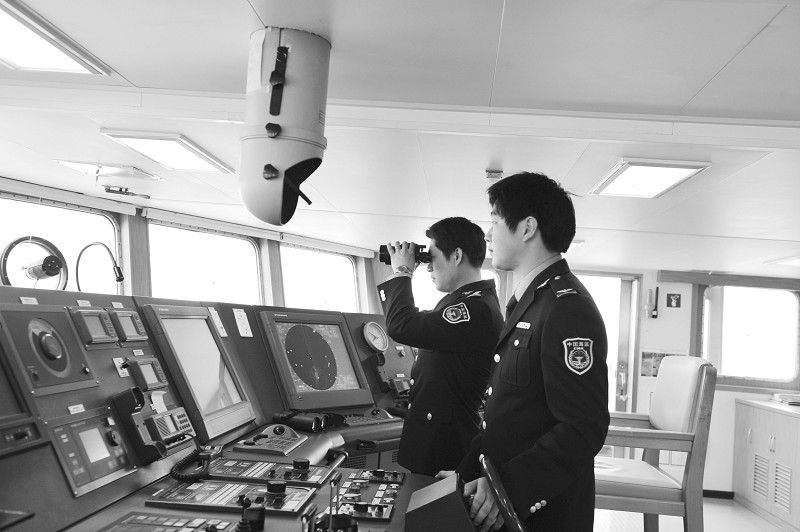 3月16日5时许,由中国海监50、66船组成的中国海监定期巡航编队,抵达钓鱼岛及其附属岛屿附近海域进行巡航。国家海洋局表示,中国海监是国家海洋局领导下的海上综合执法力量,按照有关法律和职责的规定,依法维护我国海洋权益。此次巡航体现了我国政府在钓鱼岛及其附属岛屿主权问题上的一贯立场。图为中国海监50船大副李一民和水手朱耀滔驾船驶往钓鱼岛附近海域。 (新华社发)