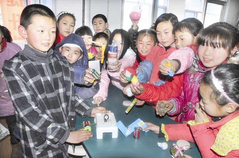 3月15日,曾都区洛阳镇高小学生小制作小发明在课间集体亮相,激发了学生学科技兴趣。
