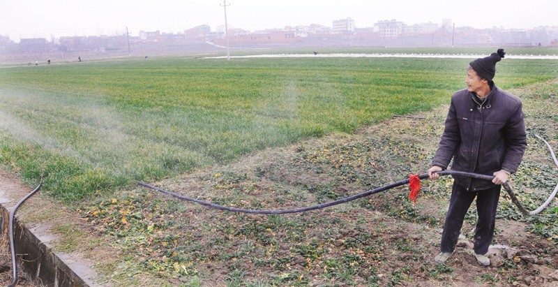 随县尚市镇星河村农民在给麦田浇返青水。目前,该镇小麦受干旱面积5.2万亩、成灾5000亩;油菜受旱面积9000亩,成灾3000亩;油桃、葡萄普遍受旱,面积达60000亩以上。针对严重的旱情,全镇上下迅速掀起“抗灾救灾保丰收”的高潮。(本报记者 杨闻名 摄)