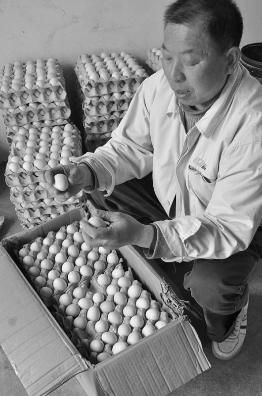 随县厉山镇神农社区六组村民廖志强,自己配制饲料,科学喂养生态蛋鸡(专产紫鸡蛋)。每天,都有新鲜紫鸡蛋二万余枚直销武汉、襄阳等大型超市。(本报记者 陈德友 通讯员 保军 承斌 摄)