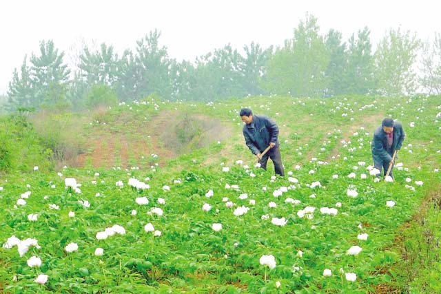 4月中旬,随县环潭镇柏树湾村中药材基地白牡丹竞相绽放。近年来该村大力发展中药材种植,金银花、牡丹、勺药总面积达3000余亩,农民人均增收700元以上。(本报记者 李文军 通讯员 万明金 摄)
