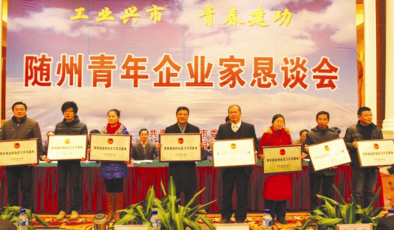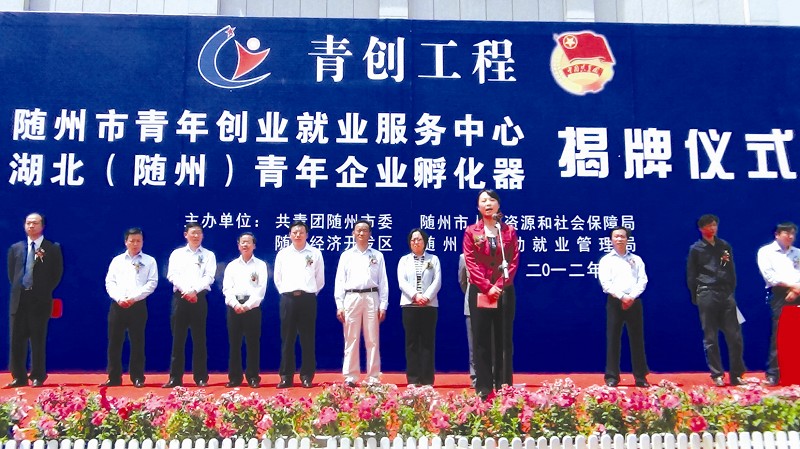 图四:随州青年创业就业服务中心暨湖北(随州)青年企业孵化器揭牌仪式