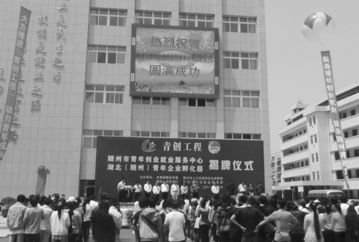 图片:随州青年创业就业服务中心暨湖北(随州)青年企业孵化器揭牌仪式现场。(通讯员 朱壮志、周剑 摄)