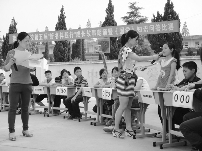 曾都区东城蒋家岗学校近日举行“好书伴我行”成长故事朗诵暨《国学》知识问答比赛,选手们用丰富有趣的语言、惟妙惟肖的动作把同学们带入了故事的海洋。该活动对丰富学生知识,进一步激发少年儿童的阅读兴趣起到积极作用。 (本报记者 李文军 通讯员 陈立馗 摄)