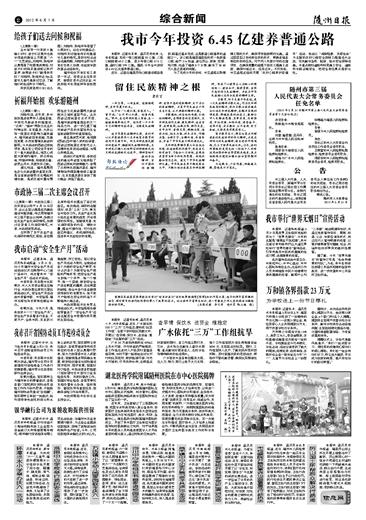 (上接第一版) 当市领导一行来到十里铺小学时,孩子们正集中在教学楼前的操场上开展迎 “六一”文艺演出。刘晓鸣、张桂华认真观看了校园集体舞后,对孩子们的精彩表演报以热烈掌声,称赞孩子