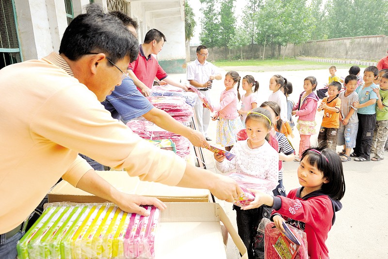他们向随县唐县镇鲁城小学全校九十六名学生每人赠送爱心书包