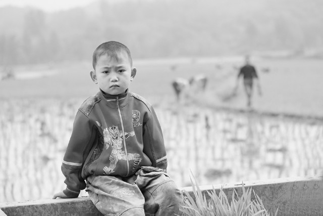 图片:6月2日,大洪山风景名胜区喻家湾村留守儿童坐在田埂上的拖拉机上玩耍,身后爷爷奶奶正在插秧。(本报记者 李文军 摄)