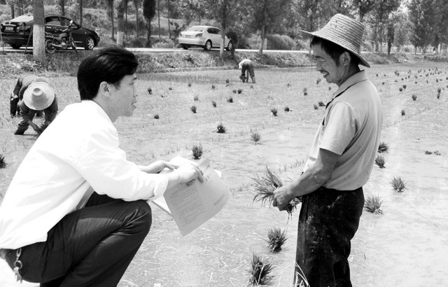 曾都区洛阳镇财经所日前组织全体工作人员深入田间地头,宣传惠农政策并与农户核对种植面积和各项补贴资金到户情况。 (本报记者 孙洪涛 摄)