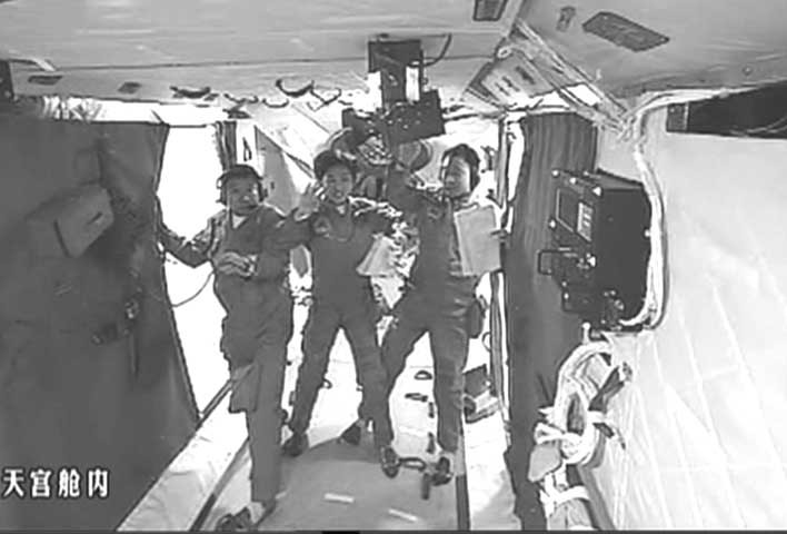 三名航天员在天宫一号拍摄“全家福”