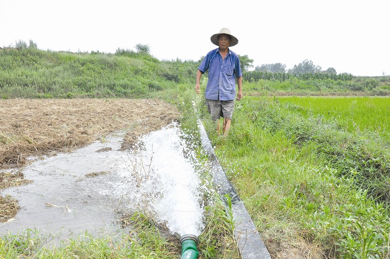 6月18日下午,随县唐县镇鲁城村三组村民刘常全启用两台水泵往自家水田里抽水,准备整田插秧。时下,面对严峻旱情,随县各地采取多种方式,抢抓时节,全力抗旱保插秧,确保夏粮作物种满种足。 (本报记者 张清 通讯员 鲍亚忠)