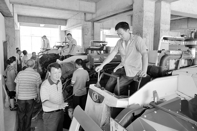 曾都区新农惠农业农民专业合作社近日挂牌成立。该合作社由14名社员出资345万元组建,购买20余台大型联合收割机、插秧机等农业机械,同时与6个村签订3000余亩土地流转协议。 (本报记者 李文军 通讯员 李东哲 摄)