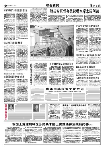本报讯 通讯员苏明钊报道:6月26日,市委常委、宣传部长陈传根到广水市调研宣传思想文化工作,重点考察文化体制改革和文化产业发展。 陈传根实地察看了湖北华都钢琴制造有限公司和湖北广彩
