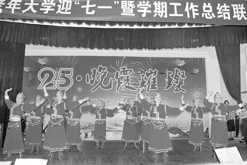 7月1日晚,市老年大学的老年朋友们聚集一堂,大家载歌载舞,用自编自演的文艺节目共同庆祝党的生日。(本报记者 李文军 通讯员 天涯 摄)