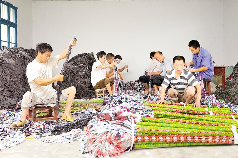 曾都区爱心残疾人就业培训中心就业基地二十余名残疾人正在制作拖把。日前他们制作的1万把价廉物美的拖把、扫把愁销,希望有爱心人士前来购买。 (本报记者 李文军摄)
