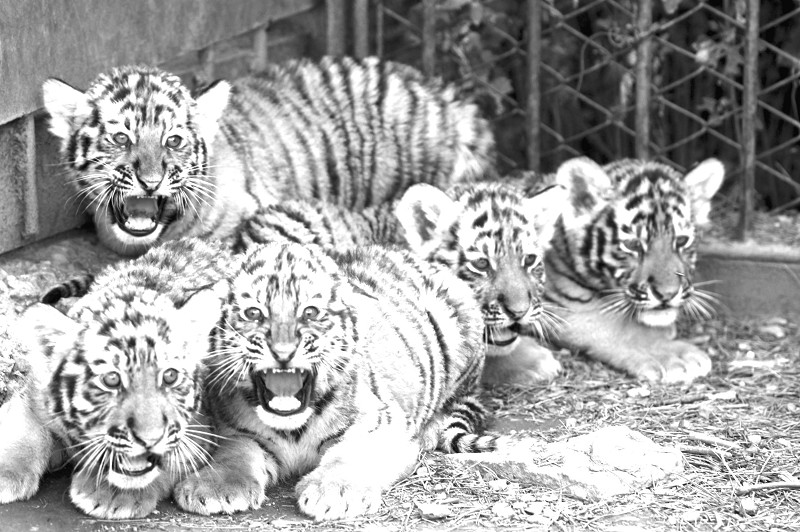 7月21日,在济南跑马岭野生动物世界,五胞胎小东北虎集体亮相,正式与游客见面。济南跑马岭野生动物世界的东北虎妈妈“虎虎”于5月25日顺利产下3雄2雌五胞胎幼崽,目前,5只小东北虎生长发育状况良好。据了解,人工饲养繁育东北虎一胎产5仔,且全部成活比较罕见。 (新华社发)