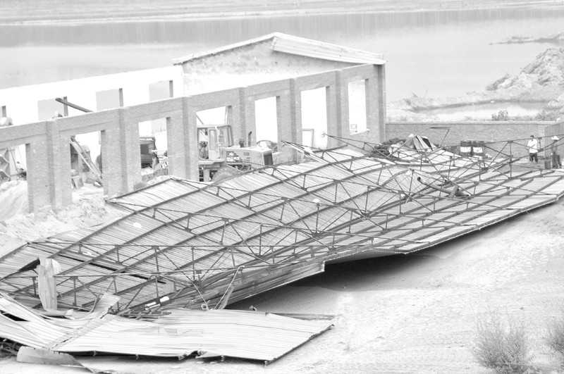 近日,一阵强降雨夹带着龙卷风袭击了市经济开发区山峰型沙场。龙卷风将房顶整体掀开。