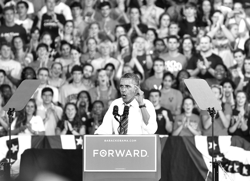 8月29日,在美国弗吉尼亚州夏洛茨维尔,美国总统奥巴马参加一场竞选活动。在备受关注的共和党全国代表大会期间,奥巴马赴艾奥瓦州、科罗拉多州和弗吉尼亚州三个重要的 “摇摆州”举办竞选造势活动以求“抢镜”。 (新华社发)