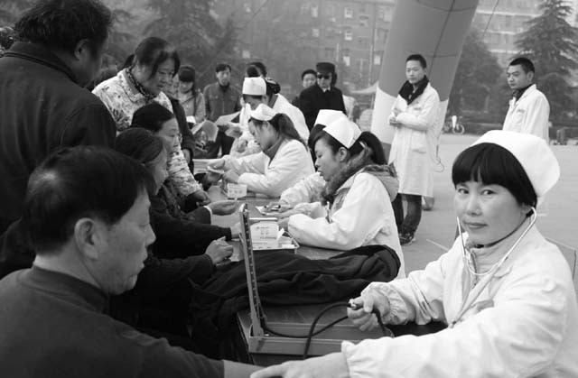 十一月中旬,曾都医院糖尿病科医护人员,结合第六届(2012年)“世界糖尿病日”活动,深入社区,开展糖尿病教育与预防、免费检查等服务。(通讯员 胡亚平 摄)