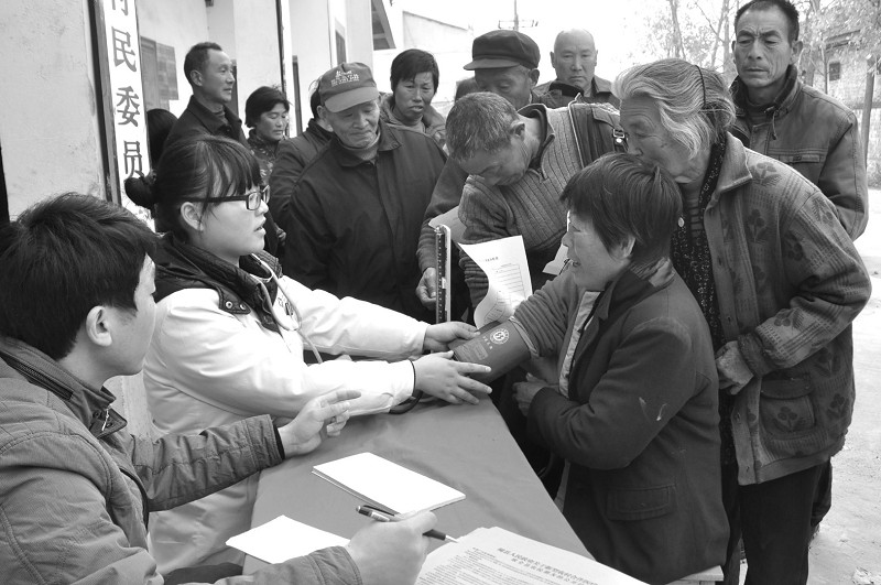 日前,随县卫生局组织各乡镇卫生院为农民免费进行冬季身体检查。图为尚市镇卫生院医务人员在尚市敖棚村为村民义务体检时的情景。 (本报记者 陈德友 摄)
