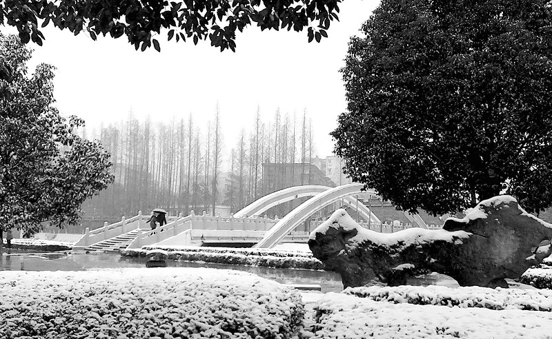 十二月二十六日,一场冬雪将随城披上银装,给城市各大公园增添一道道美景,十分壮观。图为神农公园雪景。(本报记者金鸣摄)