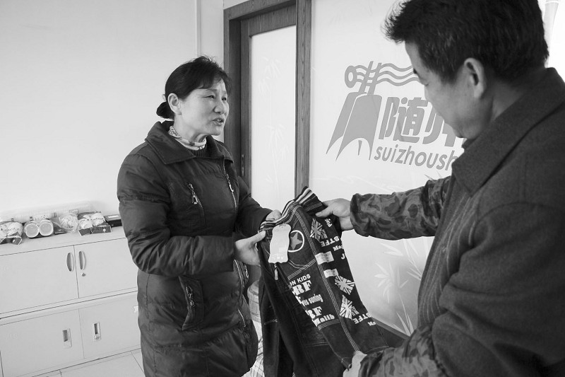4月22日,随城服装店老板辛汉英将价值4000元的儿童和老人新服装300多件送到随州日社,委托随州网捐向雅安灾区。(本报记者 徐斌 摄)