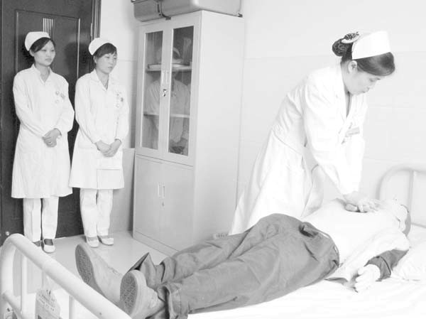 5月9日下午,曾都区北郊社区卫生服务中心护理人员开展“护理操作比赛”,迎接即将到来的“五·一二”国际护士节。 (本报记者 陈晓林摄)