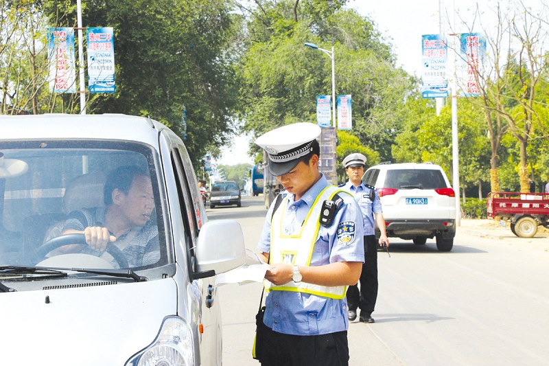 交警部门在查处酒驾的同时,加强了涉牌涉证的检查力度。图为五月十六日下午,交警在南郊执勤点检查过往车辆。(本报记者 徐斌 摄)