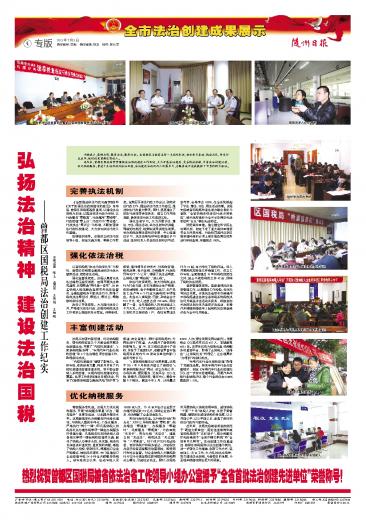 本报记者 陈玉 通讯员 王秀绢 王旭刚 汗洒城乡,聚财为国,服务企业,服务社会。在曾都区活跃着这样一支税收队伍,他们乐于奉献、执法为民,争当行业表率,他们就是曾都区国税人。