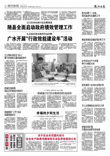 本报讯 记者王松、通讯员汪启明报道:近日,随县全面启动政府绩效管理工作,探索以行政效能提升助推发展提速。 新随县成立以来,主动推行“大部制”和“大科室制”改革,在提高行政效能上充分挖潜,全县财政供养系数仅1.06%,比上级规定低近一半。而改革激发的内生动力,推动该县在全省县域经济考核中三年大幅进位30位,现跃居第48位。 政府绩效管理,是加强政府自身建设的一项重大管理创新。随县积极争取纳入全省政府绩效管理试点县,不断探索提升行政管理服务效能,助推全县经济社会科学发展、跨越式发展。作为全省四个试点县之一,该县与上海复旦大学绩效研究中心展开战略合作,围绕“圣地车都”和“三个随县”建设总体战略,通过深入调研,确定了探索构建战略、绩效、监察“三位一体”的绩效管理体系的改革路径。 该管理体系对全县82个一级考核对象分为镇 (场)、党政综合管理、社会管理服务、经济管理、司法执法和群团6个类别,归集160余份省、市目标责任文件建立目标集,根据考核对象工作职责分解考评指标,采取日常考评、指标考核、服务对象评议、包保领导评价、年底观摩等方式实行百分制考评。年初选取了8个镇 (场)、部门率先试点,积极探索绩效管理的有效途径和方式方法,取得明显成效,为全面启动绩效管理发挥了示范引导作用。目前,该县通过总结完善,决定把绩效管理工作在全县全面铺开。 |