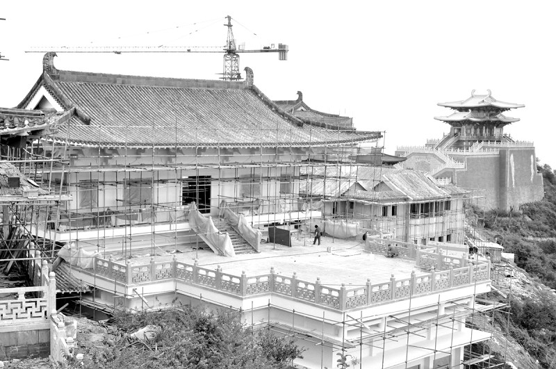 大洪山核心景区建设加速推进,将于11月初对外开放迎接游客。图为正在建设中的慈恩寺。 (本报记者 陈德友 通讯员 钟克波摄)