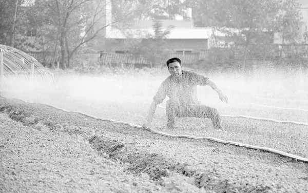 随州市神农蔬菜专业合作社采用台湾循环农业生态技术,年产西兰花、泡泡青等特色蔬菜600多吨,热销北京、上海、广州。图为合作社采用节水喷灌技术在为菜地施水。(本报记者徐斌摄)