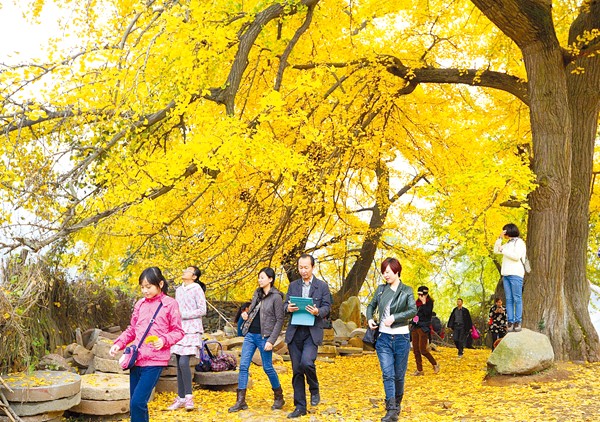 11月9日,曾都区洛阳镇千年银杏谷游人如织。虽然是阴天,当天游客仍然突破万人。(本报记者 李文军摄)