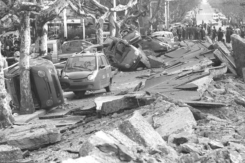 “场景就像灾难片一样。”一位开车路过事发现场的司机说,“街上大大小小的裂缝很多,最长的估计有1.5公里。”